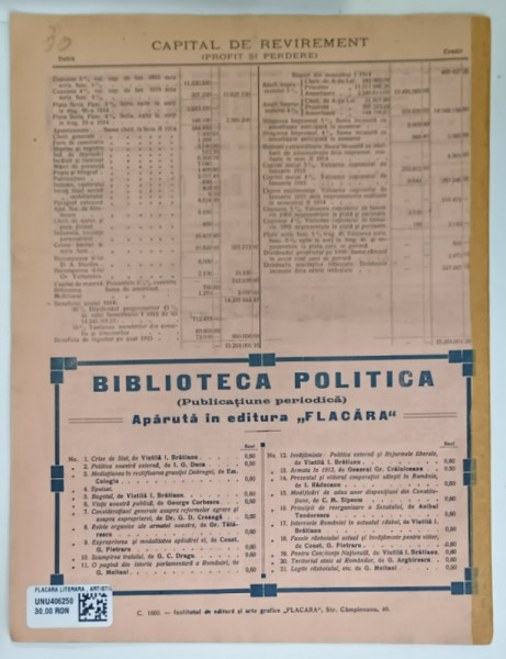 12 PAG. , COPERTA BROSATA , COTOR INTARIT CU BANDA ADEZIVA