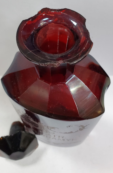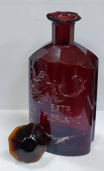 Flacon din sticla colorata in masa, pictat manual.