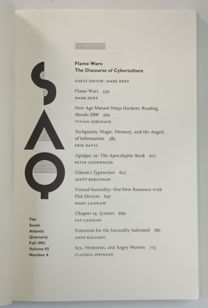 FLAME WARS , THE DISCOURSE OF CYBERCULTURE , edited by MARK DERY , 1993