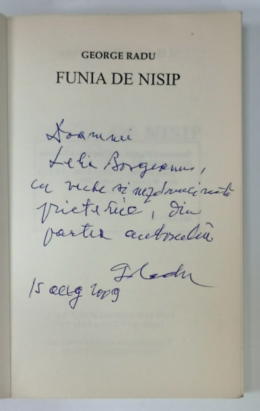 FUNIA DE NISIP de GEORGE RADU , 2009 , DEDICATIE *