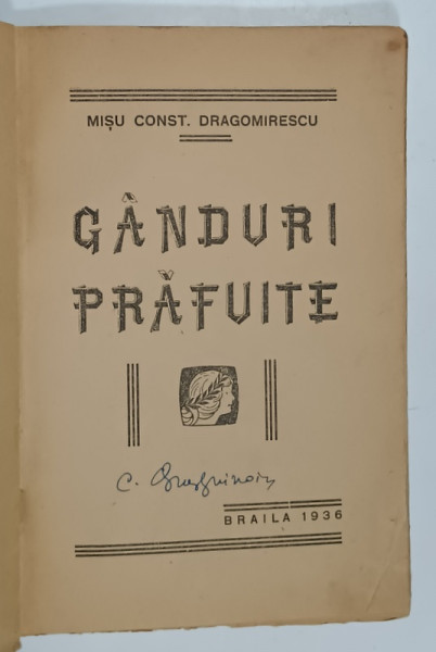 GANDURI PRAFUITE de MISU CONST. DRAGOMIRESCU , 1936 , PREZINTA O INSEMNARE PE PAGINA 3 DESPRE PROPRIETARUL VOLUMULUI *