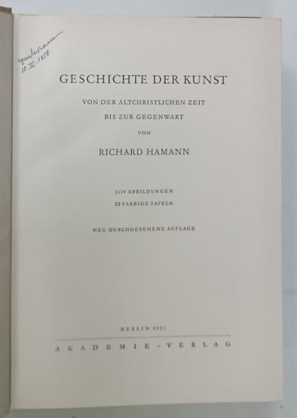 GESCHICHTE DER KUNST von RICHARD HAMANN ( ISTORIA ARTEI ) , VOLUMUL II , TEXT IN LIMBA GERMANA , 1110 ILUSTRATII , 1957