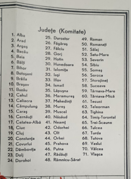 TIPARITA LA SIBIU , POLICROMA, PLIATA , CU NUMEROTAREA JUDETELOR, PRINCIPALELE CAI DE COMUNICATIE , PRECUM SI FORMELE DE RELIEF , TIPARITA PE HARTIE , DIMENSIUNE 47.5 x 66 cm.