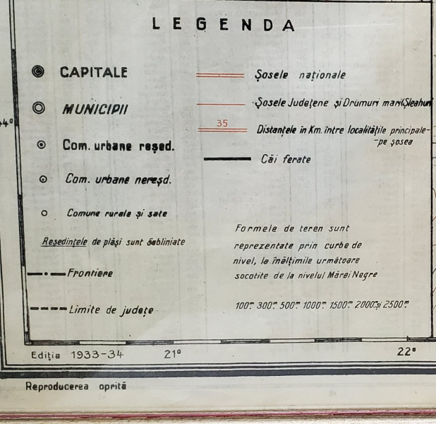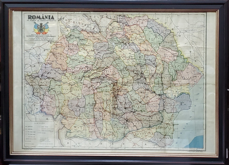 Harta Romaniei Mari pe Judete si Administrativa, 1932