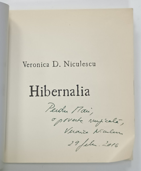 HIBERNALIA de VERONICA D. NICULESCU , 2016 , DEDICATIE *