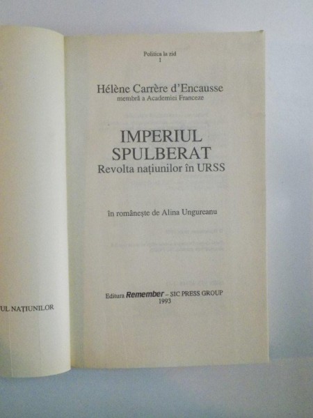 IMPERIUL SPULBERAT , REVOLTA NATIUNILOR IN URSS de HELENE CARRERE D'ENCAUSSE , 1993