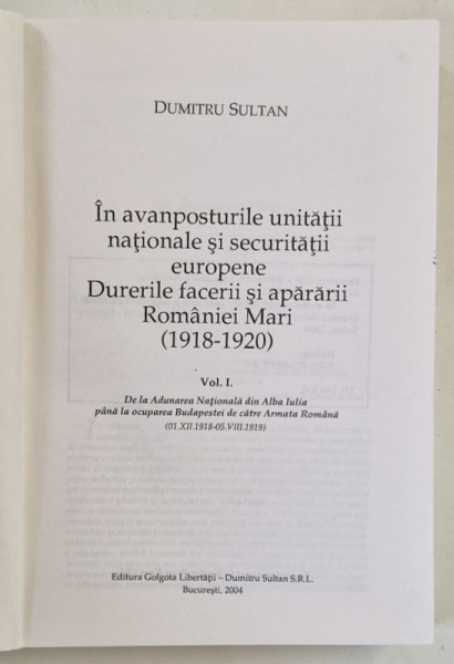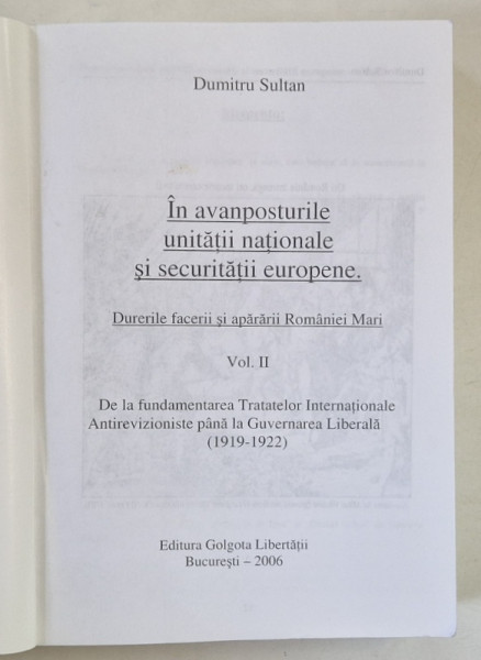 IN AVANPOSTURILE UNITATII NATIONALE SI SECURITATIII EUROPENE , VOLUMELE I - II de DUMITRU SULTAN , 2004 - 2006 *DEDICATIE