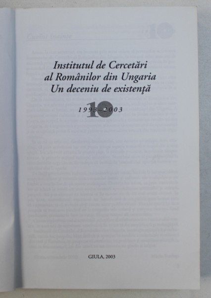 INSTITUTUL DE CERCETARI AL ROMANILOR DIN UNGARIA - UN DECENIU DE EXISTENTA 1993 - 2003 , editor responsabil MARIA BERENYI , 2003