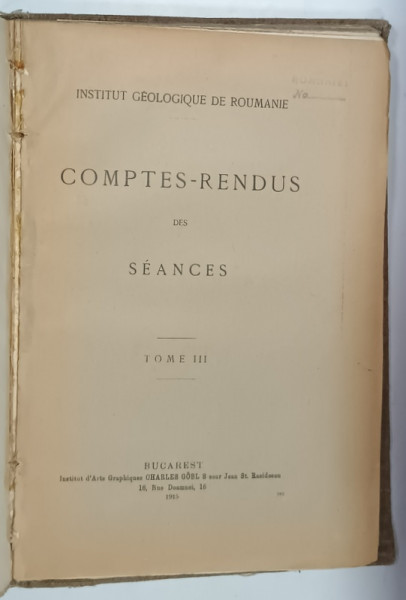 INSTITUTUL GEOLOGIC AL ROMANIEI , DARI DE SEAMA ALE SEDINTELOR , VOLUMUL III / COMPTES - RENDUS DES SEANCES , TOME III , 1912 -1915 , COLEGAT