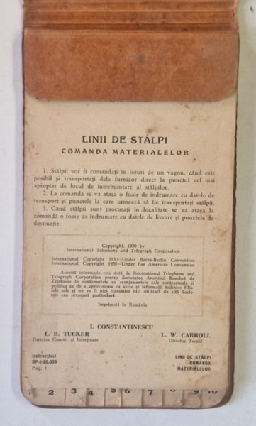 INSTRUCTIUNI PENTRU INSTALATII EXTERIOARE , LINII DE STALPI de I. CONSTANTINESCU ... I . W. CARROL , 1930