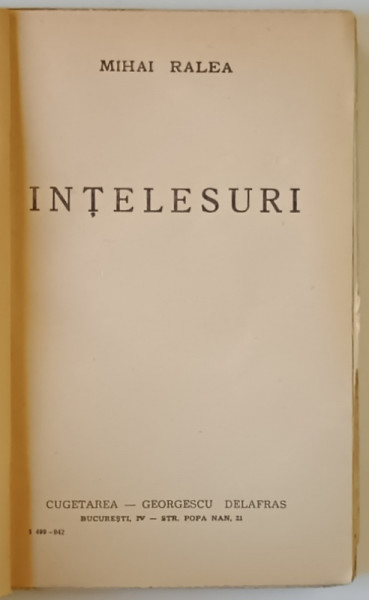 INTELESURI de MIHAI RALEA , 1942 *DEDICATIE