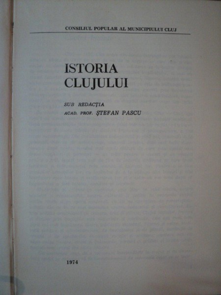 ISTORIA CLUJULUI de STEFAN PASCU , 1974