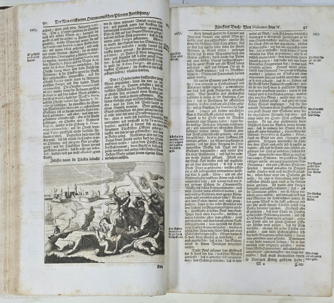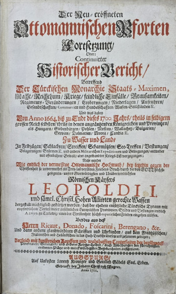 Textul este insotit de numeroase portrete si tablouri panoramice ale centrelor importante din cuprinsul Imperiului, inclusiv din provinciile romanesti precum Clausenburg (Cluj), Sigeth (Sighet), Temeswar (Timisoara), Grosswardein(Oradea). Printre acestea se gasesc doua gravuri inedite ce reprezinta asediul Vienei si o executie comuna.