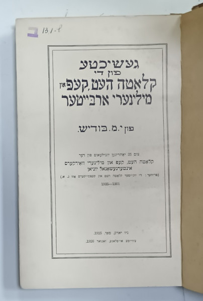 ISTORIA LUCRATORILOR LA CONFECTIONAREA PALARIILOR DIN PANZA KEPON de J.M. BODISCH , TEXT INTEGRAL IN LIMBA EBRAICA , 1926