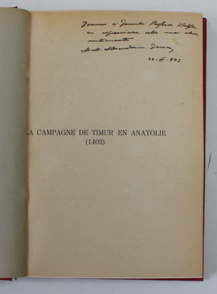 LA CAMPAGNE DE TIMUR EN ANATOLIE ( 1402 ) de MARIE MATHILDE ALEXANDRESCU DERSCA , Bucuresti 1942 LA CAMPAGNE DE TIMUR EN ANATOLIE ( 1402 ) de MARIE MATHILDE ALEXANDRESCU DERSCA , Bucuresti 1942