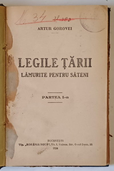 LEGILE TARII LAMURITE PENTRU SATENI de ARTUR GOROVEI , PARTEA I , 1924