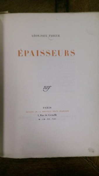 Leon Paul Fargue, Epaisseurs, Paris 1928, Exempar H.C.