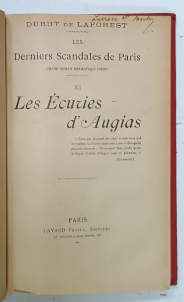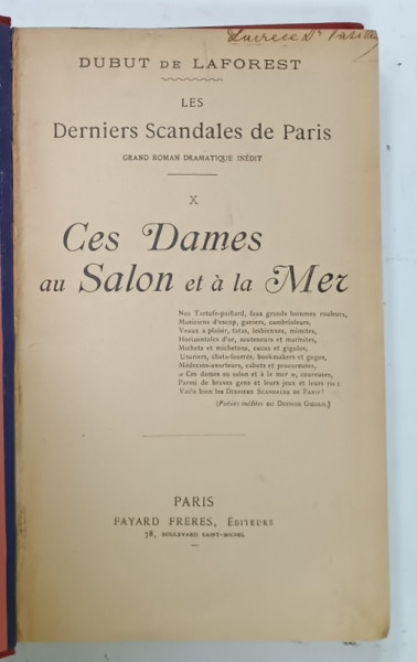 LES DERNIERS SCANDALES DE PARIS par DUBUT DE LAFOREST , VOLUMELE X - XI - XII , COLEGAT , CCA. 1900