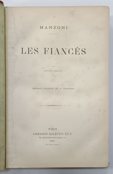 LES FIANCES par MANZONI , ouvrage illustre de 37 gravures , 1890
