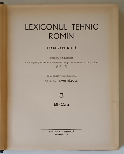 LEXICONUL TEHNIC ROMAN , LITERELE BL - CAU , VOLUMUL III , sub redactia REMUS RADULET , 1958