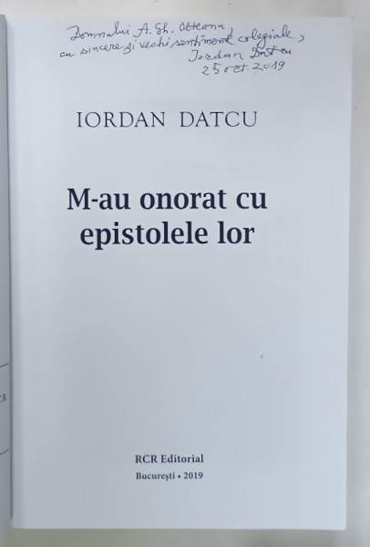 M - AU ONORAT CU EPISTOLELE LOR de IORDAN DATCU , 2019 , DEDICATIE *