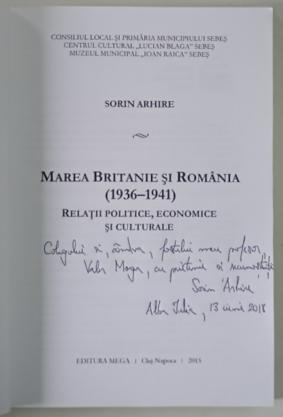 MAREA BRITANIE SI ROMANIA ( 1936 - 1941 ) , RELATII POLITICE , ECONOMICE SI CULTURALE de SORIN ARHIRE , 2015 *DEDICATIE