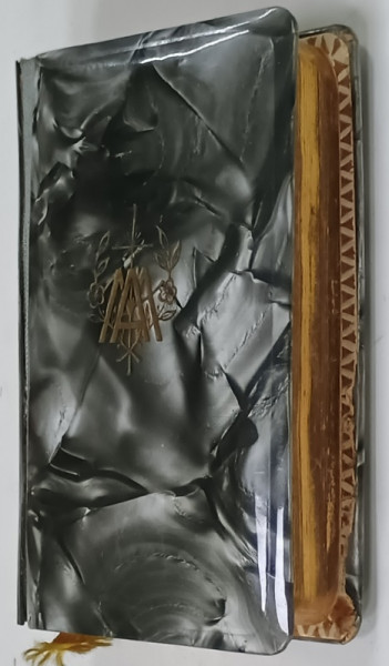 APARUTA IN GERMANIA , 448 PAGINI , TRANSE COMPLET AURITE , COPERTA SIDEFATA CU MONOGRAMA SI CRUCE , DIMENSIUNE 10.3 x 6 cm.