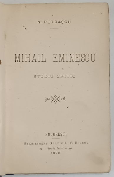 MIHAIL EMINESCU , STUDIU CRITIC de N. PETRASCU , 1892
