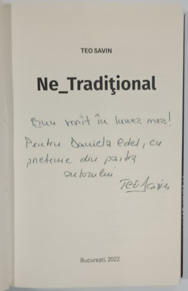 NE - TRADITIONAL de TEO SAVIN , LITERATURA EROTICA , 18+ ! , 2022 , DEDICATIE *