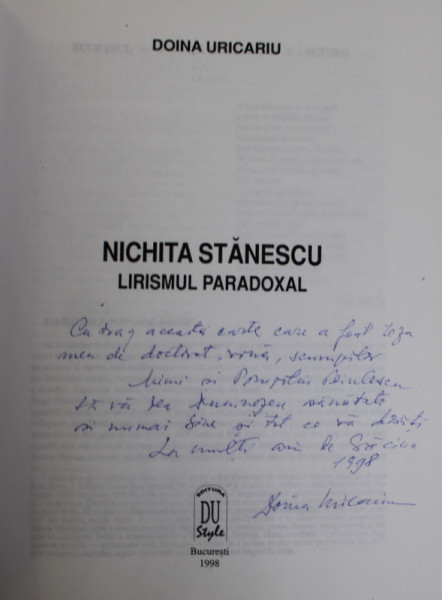 EDITURA DU STYLE , 188 PAGINI , COPERTA ORIGINALA BROSATA , CONTINE DEDICATIA AUTOAREI *