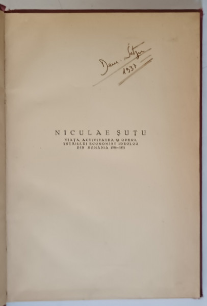 NICULAE SUTU, VIATA, ACTIVITATEA SI OPERA INTAIULUI ECONOMIST IDEOLOG DIN ROMANIA 1798-1871 de ION VEVERCA - BUCURESTI, 1936