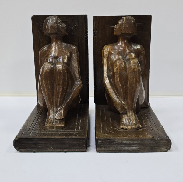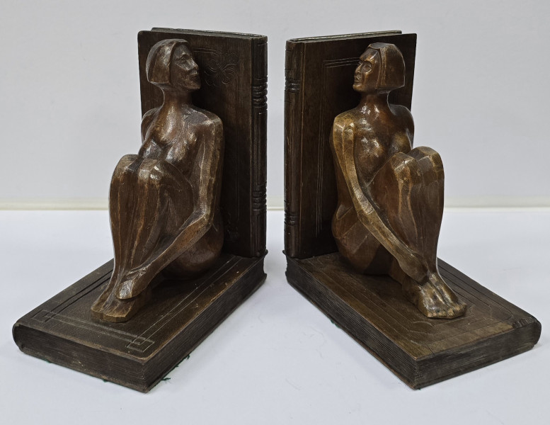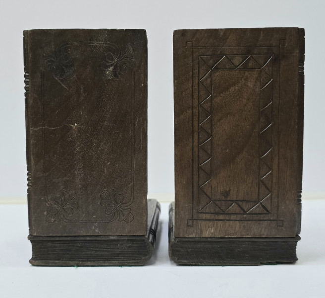 Pereche de suporti din lemn pentru carti. H = 15.8 cm