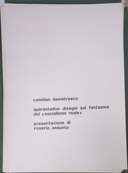 TIPARITE LA ROMA , CONTINE 42 DE LITOGRAFII VOLANTE DUPA DESENE de CAMILIAN DEMETRESCU , SEMNATE OLOGRAF SI INTITITULATE DE AUTOR CU CREIONUL PE FIECARE PLANSE , EXEMPLAR NUMEROTAT 23 DIN 290 , SEMNAT DE AUTOR PE MAPA , PLANSE MONOCROME , DIMENSIUNE PLANSA 34 .8 x 24.9 cm. , MAPA BROSATA , TEXT IN LIMBA ITALIANA