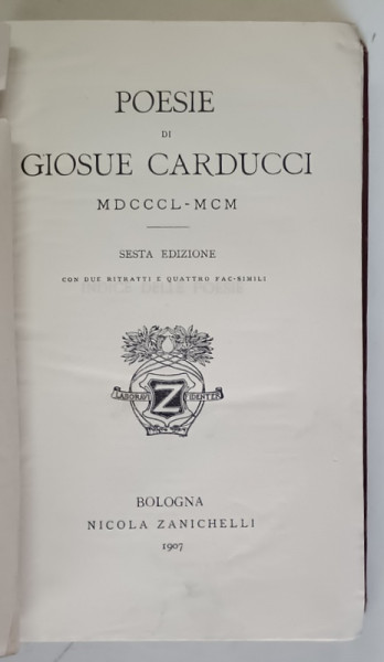POESIE , SESTA EDIZIONE di GIOSUE CARDUCCI , 1907