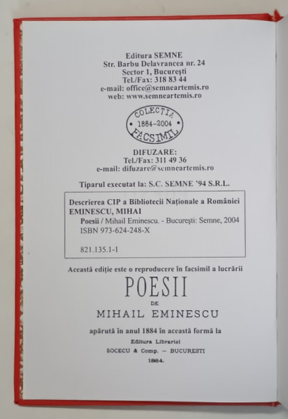 EDITURA SEMNE , 307 PAGINI , LEGATURA CARTONATA SI PANZATA , EDITIE ANASTATICA