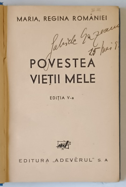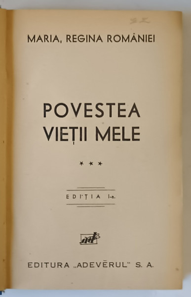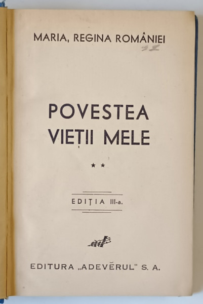 POVESTEA VIETII MELE , VOLUMELE I - III de MARIA , REGINA ROMANIEI *EDITIE INTERBELICA