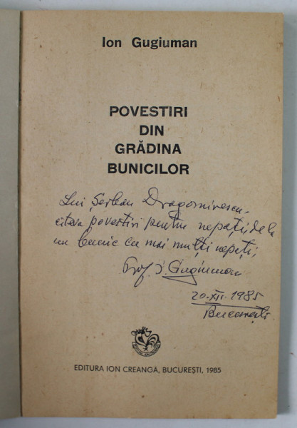 EDITURA ION CREANGA , 78 PAGINI , COPERTA BROSATA, CONTINE DEDICATIA AUTORULUI*