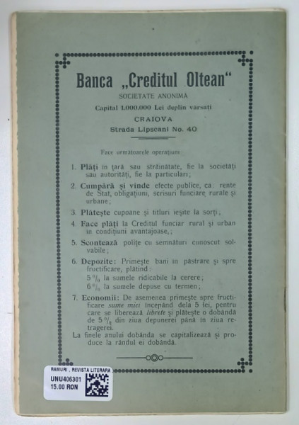 RAMURI , REVISTA LITERARA , ANUL VII , NO. 5 , 1912