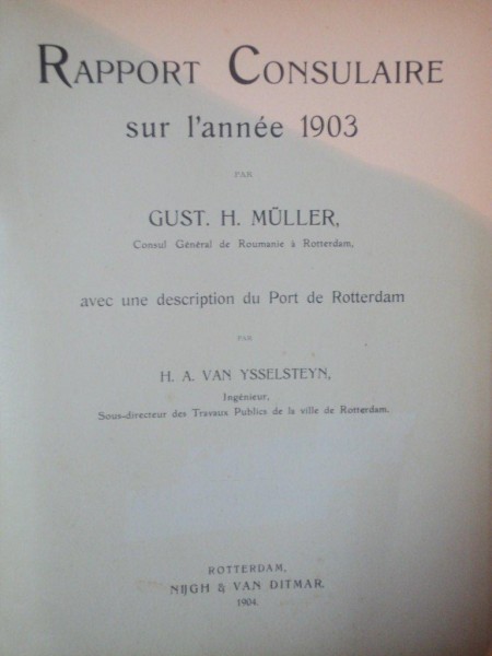 RAPORT CONSULAIRE SUR L ' ANNEE 1903 par GUST. H. MULLER ( consul general de Roumanioe a Rotterdam ) AVEC UNE DESCRIPTION DU PORT DE ROTTERDAM par H.