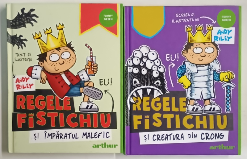 REGELE FISTICHIU SI IMPARATUL MALEFIC / REGELE FISTICHIU SI CREATURA DIN CRONS , VOLUMELE I - II , text si ilustratii de ANDY RILEY , 2021