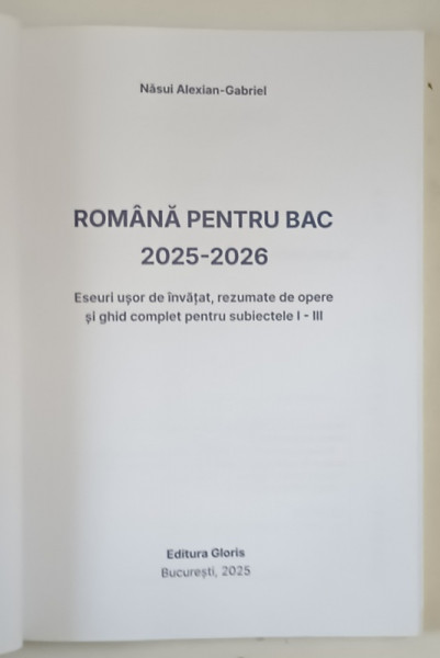 ROMANA PENTRU BAC , 2025 - 2026 , ESEURI USOR DE INVATAT , REZUMATE DE OPERE SI GHID COMPLET PENTRU SUBIECTELE I - III de NASUI ALEXIAN - GABRIEL , 2025