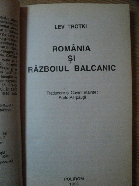 ROMANIA SI RAZBOIUL BALCANIC de LEV TROTKI , 1998 *MINIMA UZURA ROMANIA SI RAZBOIUL BALCANIC de LEV TROTKI , 1998 *MINIMA UZURA