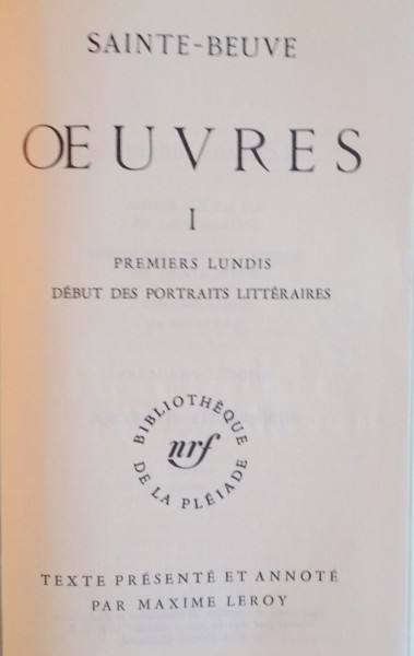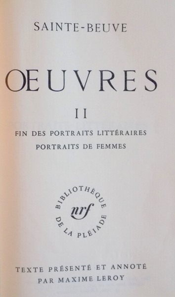 NR. PAG VOL. I- NOTICES SUR LA VIE ET SUR L`OEUVRE, CRITIQUE DE SAINTE - BEUVE, BIBLIOGRAPHIE - 1297, VOL. II - 1686, EDITURA BIBLIOTHEQUE DE LA PLEIADE, TEXT IN LIMBA FRANCEZA
