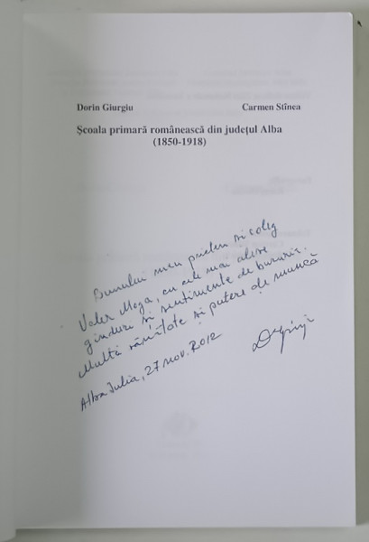 SCOALA PRIMARA ROMANEASCA DIN JUDETUL ALBA ( 1850 - 1918 ) de DORIN GIURGIU si CARMEN STINCA , 2011 *DEDICATIE