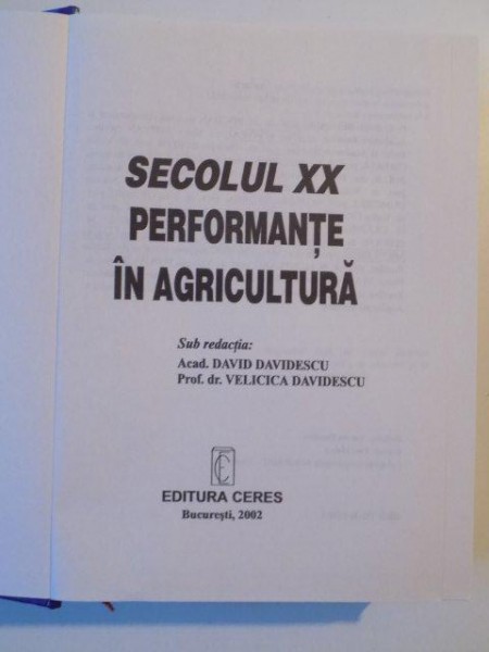 SECOLUL XX PERFORMANTE IN AGRICULTURA de DAVD DAVIDESCU si VELICICA DAVIDESCU , BUCURESTI 2002