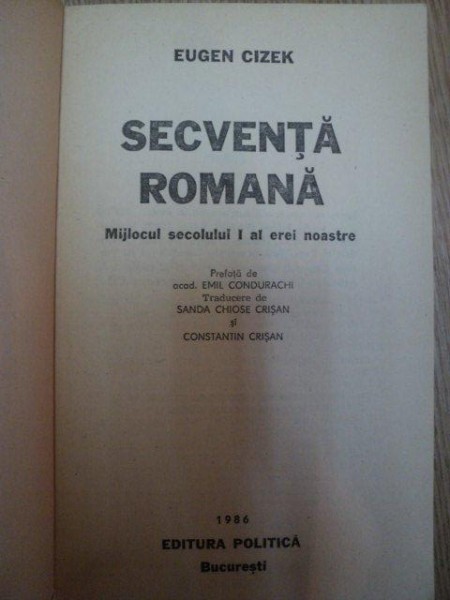 SECVENTA ROMANA . MIJLOCUL SECOLULUI I AL EREI NOASTRE de EUGEN CIZEK , 1986