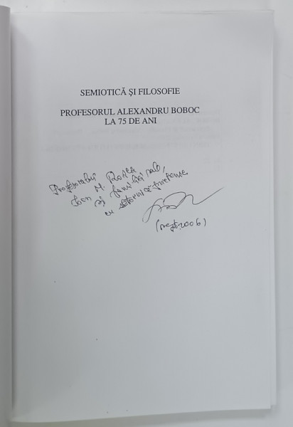 SEMIOTICA SI FILOSOFIE , PROFESORUL ALEXANDRU BOBOC LA 75 DE ANI , 2006 , DEDICATIE *