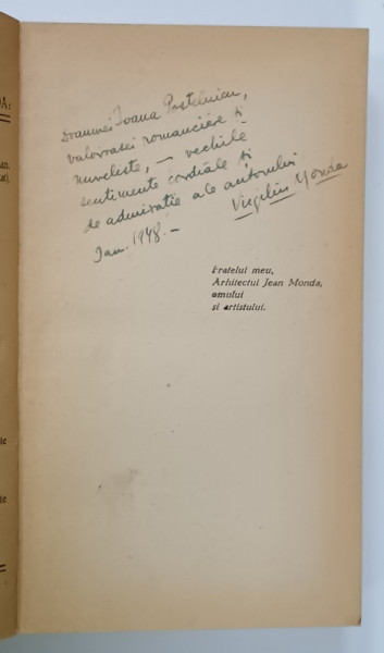 SERILE ORASULUI , roman de VIRGILIU MONDA , 1947 , DEDICATIE *