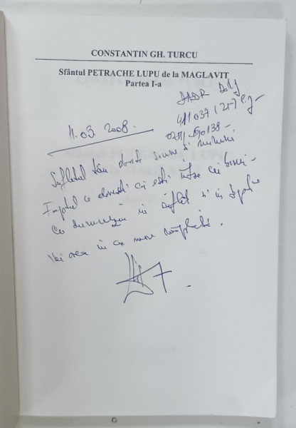 SFANTUL PETRACHE LUPU DE LA MAGLAVIT de TURCU CONSTANTIN , 2006 , COPERTA CU URME DE INDOIRE , DEDICATIE *