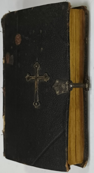 TIPARITA LA VENETIA , CONTINE O GRAVURA CU REPREZENTAREA SFINTEI TREIMI , FORMAT 11.8 x 7.2 cm. LIPSA PAGINILE 513 LA 546 , 542 PAGINI TOTAL , LEGATURA DE EPOCA CU URME DE UZURA , CRUCE DIN ALAMA ATASATA PE COPERTA FATA SI SPATE , INCUIETOARE METALICA , TRANSE COMPLET AURITE , STARE DE CONSERVARE CONFORM FOTOGRAFIEI , PREZINTA URME DE UZURA